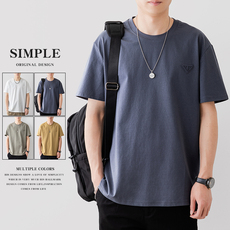 男士短袖t恤夏季新款日系复古潮流青年休闲宽松圆领百搭男装上衣