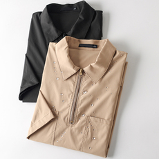 夏季新款日系POLO领刺绣短袖T恤女宽松半袖情侣装工装上衣男