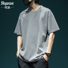重磅日系50支纯棉高支短袖T恤男士打底衫夏季半袖宽松圆领男装潮