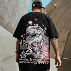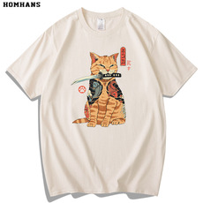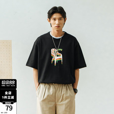 夏季日系设计感印花短袖男宽松百搭休闲圆领大码宽松潮流薄款T恤