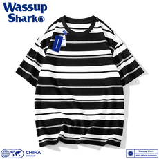 日系潮牌复古街头条纹圆领短袖T恤男女夏季ins风宽松情侣百搭T恤