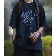 MRCYC夏季短袖男士T恤韩系潮流字母印花半袖日系宽松圆领纯棉体恤
