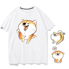 秀洛忠犬八公秋田犬日系ins手绘柴犬表情包短袖t恤宽松男百搭半袖