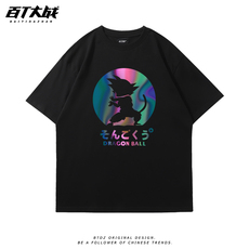 七龙珠t恤反光炫彩悟空印花宽松短袖男夏季日系青少年小众体恤