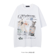 日系NEKOZUSHI 未使用的 复古可爱经典印花小众男女款宽松短袖T恤