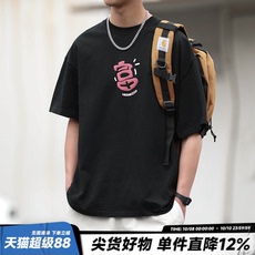 摩严潮牌男装宽松日系卡通联名短袖T恤纯棉大码男生半袖潮流夏季