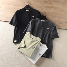 日系复古刺绣麂皮绒短袖T恤男2025夏季新款宽松百搭圆领潮牌上衣