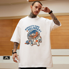 工厂样衣日系一线休闲重磅300克夏季纯棉短袖T恤男宽松字母印花潮