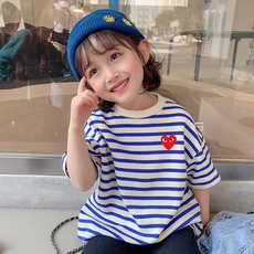 夏季儿童纯棉时尚条纹短袖男孩女童百搭T恤宝宝上衣薄款休闲服潮