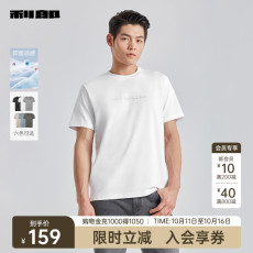 太平鸟男装 肌理面料圆领体恤男夏季潮流休闲白色短袖T恤男
