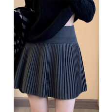 百褶裙女早秋2025新款短裙高腰a字裙半裙黑色裙子针织半身裙秋冬