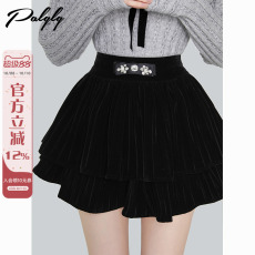 POLOWALK女士百褶裙秋冬新款质感学院风刺绣短裙女时尚半身裙