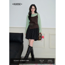 【关晓彤同款】唐狮2024秋冬新款半身裙女针织百褶裙气质短裙垂感