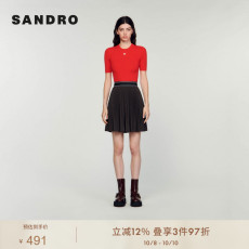 SANDRO Outlets秋冬女装法式时尚气质褶裥高腰收腰针织半身裙短裙