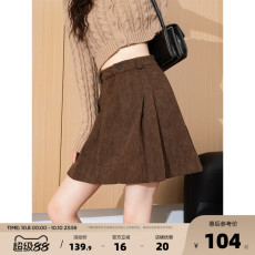美拉德咖色灯芯绒半身裙女秋冬微胖大码百搭高腰遮胯a字百褶短裙
