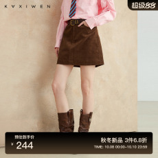 KHV真维斯咖色半身裙女灯芯绒秋冬短裙小个子2025新款A字包臀裙子