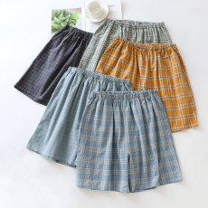 夏季水洗纯棉短裤男格子全棉五分裤休闲家居裤有口袋大码单层棉布