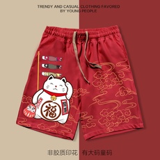 2025潮流直筒男士短裤松紧腰五分印花休闲裤沙滩裤欧货中裤青年款