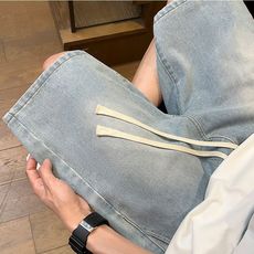 BOYUE帛跃夏季休闲纯色牛仔短裤男高街五分直筒裤潮牌ins痞帅宽松