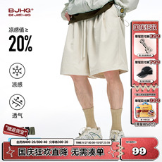 BJHG不计后果凉感短裤男款2025新款夏宽松休闲百搭透气直筒沙滩裤