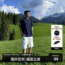 SANBAI 叁佰【白塔】男夏季纯棉短裤百搭抽绳休闲运动宽松五分裤