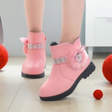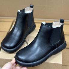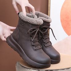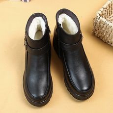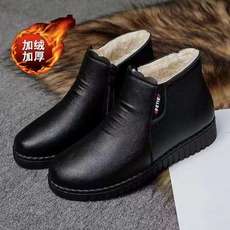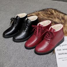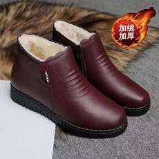 保暖平底中老年靴子绒毛加绒防滑皮鞋女冬老人棉鞋子平跟妈妈短靴