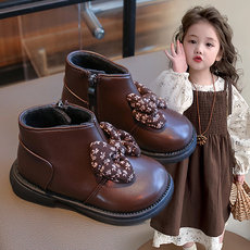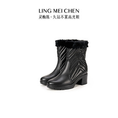 短靴保暖平底中老年靴子绒毛加绒防滑皮鞋女冬老人棉鞋子平跟妈妈