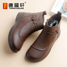 唐福轩短靴女冬季新款加绒加厚保暖皮靴中老年妈妈时尚鞋子马丁靴