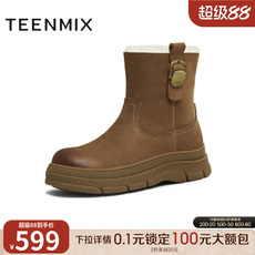 天美意巴恩风复古厚底西部靴女鞋子软底时装靴休闲短靴2025冬新款