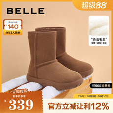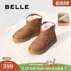 百丽厚底保暖加绒雪地靴女款冬季新款羊毛毛短靴棉鞋子B2272DD4