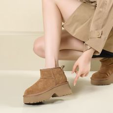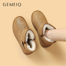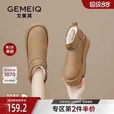 戈美其雪地靴女冬季真皮加绒爆款短筒短靴厚底加厚保暖面包棉鞋子