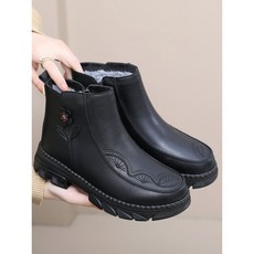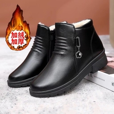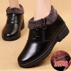 平跟妈妈短靴保暖中老年靴子绒毛加绒平底防滑皮鞋女冬老人棉鞋子