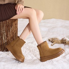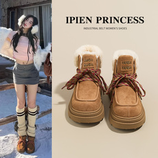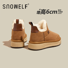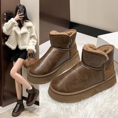 厚底雪地靴女2025秋冬季新款短靴棕色复古增高加绒保暖毛毛棉鞋子