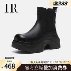 天美意复古厚底增高西部靴时装靴女鞋子休闲短靴皮靴2025冬季新款