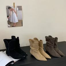 2025年秋冬新款法式复古尖头细跟短靴女中筒马丁靴切尔西靴女鞋子