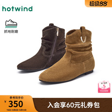 热风棕色堆堆靴女2025年冬季新款复古短靴休闲西部靴子百搭女鞋子