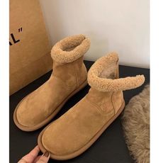 2024年冬季新款羊毛雪地靴女短筒皮毛一体羊毛短靴棉鞋子保暖加厚