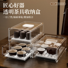 茶具收纳盒防尘带盖透明茶几桌面茶叶茶杯整理功夫茶壶置物架存放