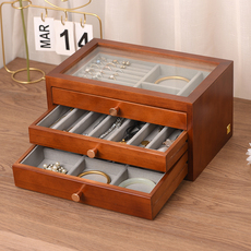 轻奢实木三金首饰盒2025新款项链黄金手镯耳钉收纳盒抽屉式小型