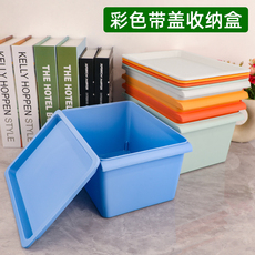 彩色方形带盖塑料收纳盒办公室桌面文具杂物储物盒客厅零食置物筐