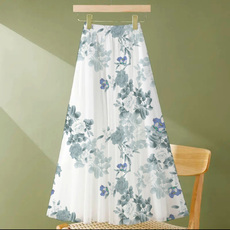 2024春夏碎花女裙子波点雪纺百褶裙半身裙中长款直筒圆点半身长裙