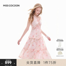 MISS COCOON无袖连衣裙2025夏季雪纺V领碎花长裙女