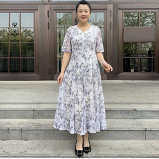 夏季新款度假连衣裙雪纺碎花微胖显瘦遮肚裙大码宽松沙滩海边长裙