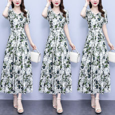 夏季连衣裙女2025新款短袖显瘦长裙气质时尚减龄碎花长款大摆裙潮
