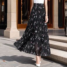 2024春夏碎花女裙子波点雪纺百褶裙半身裙中长款直筒圆点半身长裙