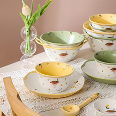 可爱釉下彩盘子菜盘家用汤碗吃米饭碗好看的餐具2025新款陶瓷碗碟