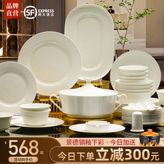 景德镇釉下彩奶油碗家用饭碗菜盘鱼盘碗碟套装陶瓷餐具高颜值乔迁