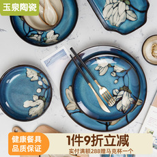 摩登主妇蓝雨餐具盘子釉下彩日式碗碟套装陶瓷碗家用碗具中式鱼盘