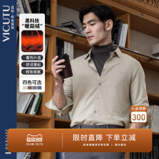 威可多男磨毛衬衫长袖棉质混纺暖和商务长袖T恤