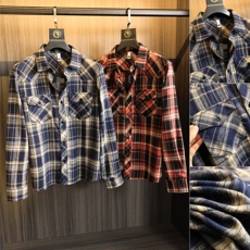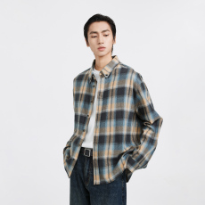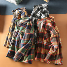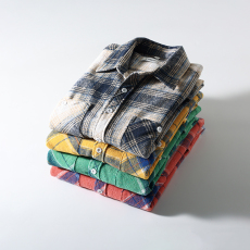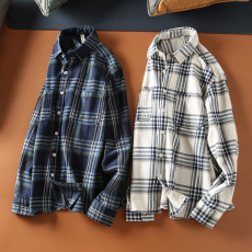 走老美订单 高级磨毛水洗格纹 2025年春季格子复古翻领长袖衬衫男